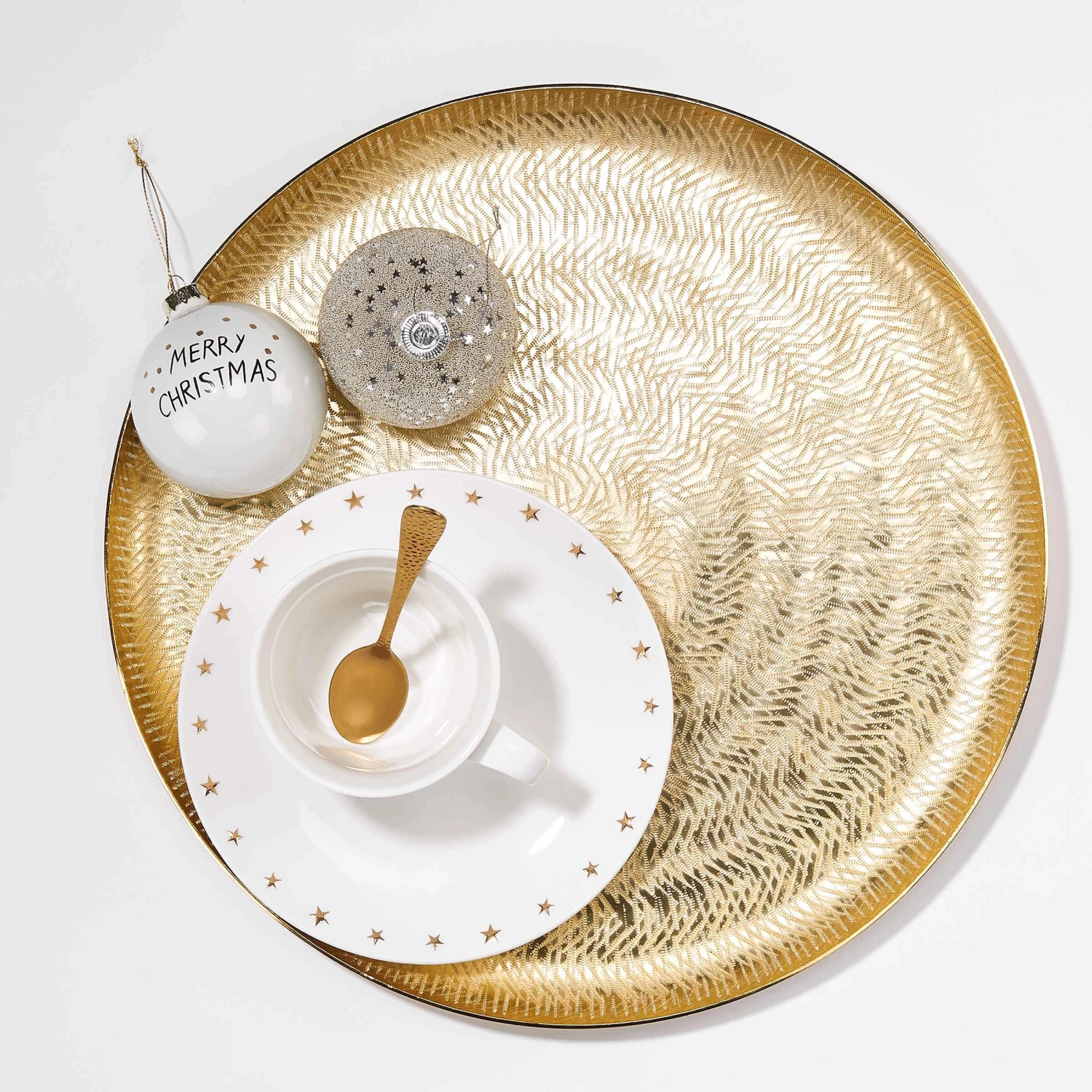 Was unser Golden Star Deko-Teller zum Star in Ihrem Zuhause macht? Geriffelte Effekte, der schimmernde Gold-Ton – und natürlich das perfekte Zusammenspiel mit den Votiven und dem zweiten Deko-Teller aus der Golden Star Serie.